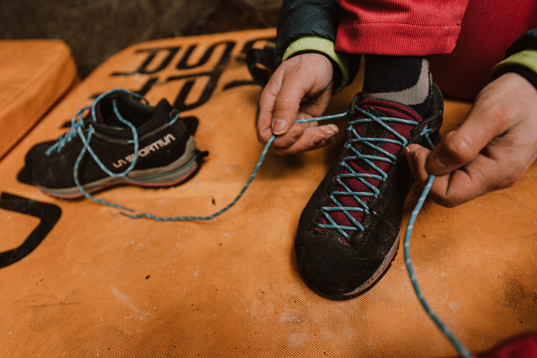 Le laçage des chaussures d’approche reprend celui précis et enveloppant des chaussures d’escalade. Credits to La Sportiva.