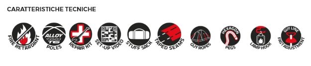 La tente est facilement montable grâce aux deux poteaux en duraluminio de couleur différenciée. La porte d'entrée avec moustiquaire se trouve sur le côté tandis que la ventilation est située à l'avant.