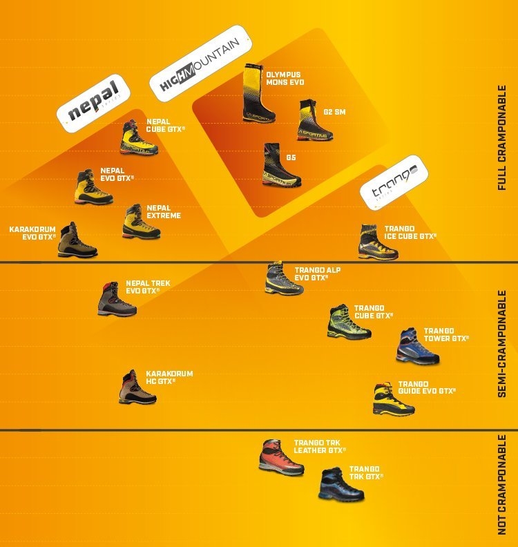 Pour quoi puis-je utiliser Trango Tower GTX ? Certainement pour le trekking, une chaussure au chaussant confortable à porter même pendant plusieurs heures. Je peux également les utiliser pour l'alpinisme grâce à la partie du talon cramponnable et donc compatible avec les crampons semi-automatiques et enfin, elles sont également excellentes pour les via ferrata, avec une zone d'escalade confortable et excellente à l'avant.