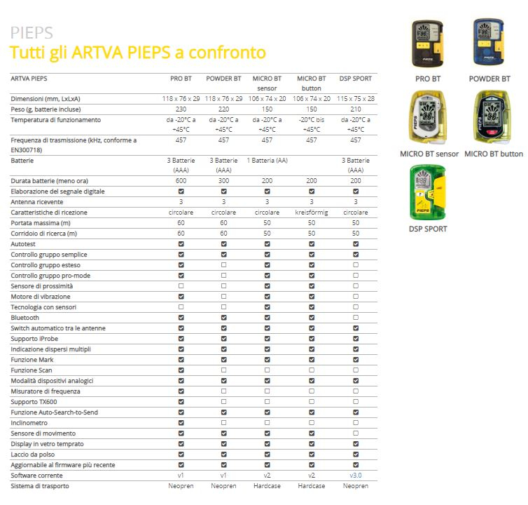 - iProbe Support : Le PIEPS PRO BT peut être temporairement désactivé par la sonde intelligente iProbe. Sur le récepteur ARTVA, le premier signal le plus fort disponible est automatiquement affiché.
